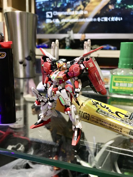 今までビームエフェクトの塗装しなかった事が悔やまれる 蛍光塗料吹くだけでこんなに映えるとは思わなかった #ガンプラ