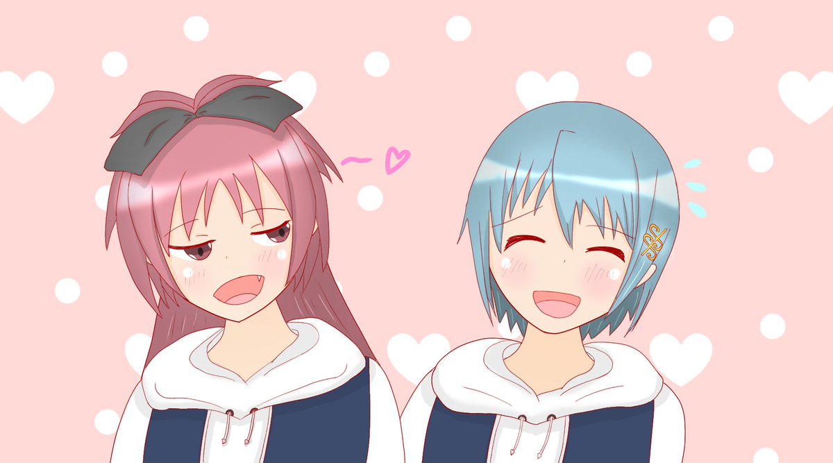 #杏子のひ #まどマギ #お絵描き #あんさや さやかも描いて無かったので、もうあんさやで良いじゃないか🥰 とにかく急いで描いた、なので何故かペアルックで杏子ちゃんはなんかポワーッとしてます🥰 ほんのり百合風味🤤