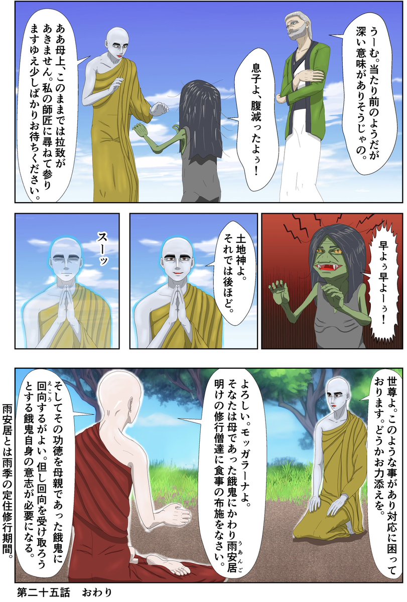 フレイムズ餓鬼編 第二十五話 仏弟子と土地神 餓鬼編がついに100ページ到達! よく頑張ったな😭 前回分はスレッドに。 #漫画 #漫画が読めるハッシュタグ #マンガ