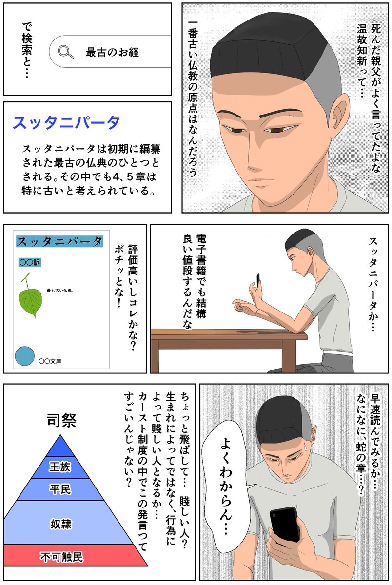 フレイムズ第一欲天編 第二話 スッタニパータ 古いお経の日本語訳の話です。 左上からお願いします🙇♂️ 前回の話はスレッドにしたつもり😅 #漫画が読めるハッシュタグ #マンガ