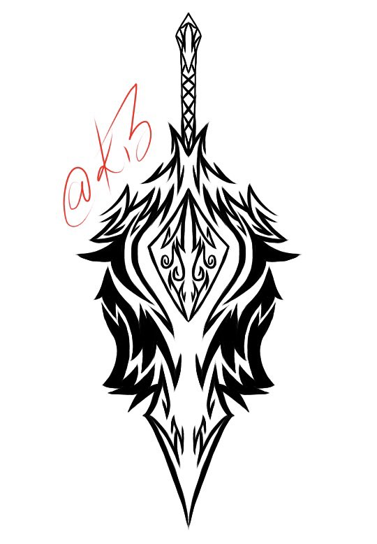 フレン・E・ルスタリオさんをイメージしたタトゥーを描いてみました。 イメージとしては騎士という事で剣をモチーフにしてみました。 #フレン見て