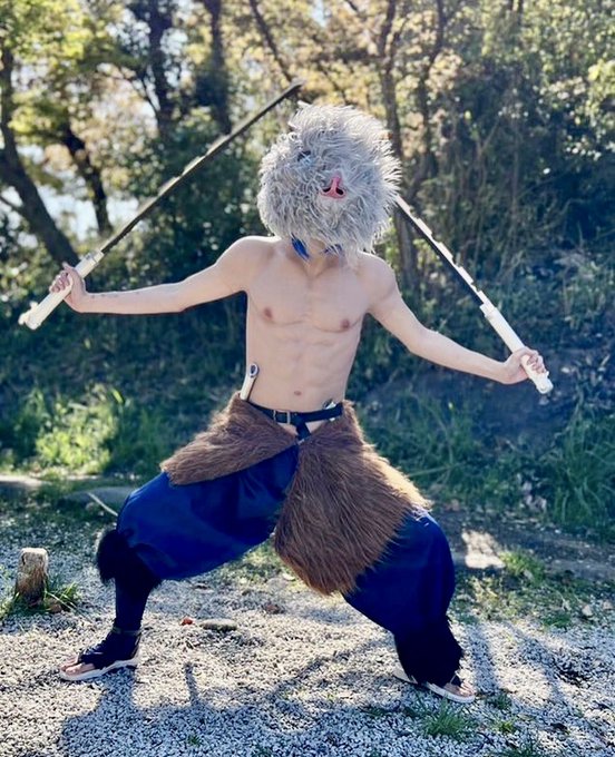 1 7 【鬼滅の刃/嘴平伊之助】 (乂'ω'){獣の呼吸 弐ノ牙 切り裂き) 📸 @nishipyKyon #コスプレ #鬼滅の刃 #嘴平伊之助 23/04/10 20:01