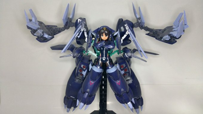 #メガミデバイス 夜勤前にやっと完成! 皇巫スサノヲ蒼炎!(通称:あおのちゃん) このゴッテゴテ感たまらんなぁ〜(≧∇≦)b 詳しい解説は代替えテキストにて!