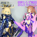 #メガミデバイス 最後に素体状態と 以前製作したももらぷちゃん(サイファーイメージカラーのラプターちゃん) と並べてみました! この娘達は双子という設定で 今回のらぷこんちゃんが姉 ももらぷちゃんが妹 という位置づけです。