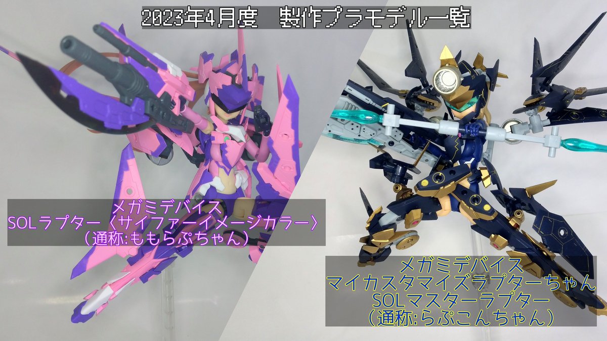 4 15 #メガミデバイス 最後に素体状態と 以前製作したももらぷちゃん(サイファーイメージカラーのラプターちゃん) と並べてみました! この娘達は双子という設定で 今回のらぷこんちゃんが姉 ももらぷちゃんが妹 という位置づけです。 23/04/29 20:37