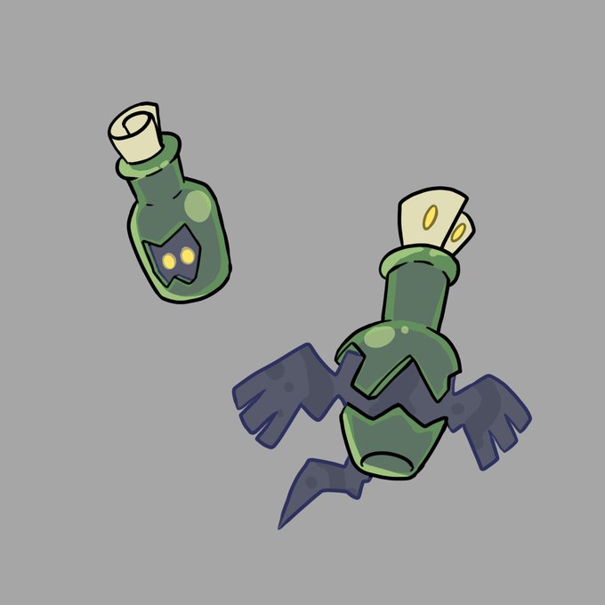 FAKETOBER for day 19 "Object" here's a ghost type inspired in the notes whitin bottles on the sea, it is said that the content of the note is actually a map, but no one has been able to read it all the designs for this challenge are for sale #inktober2021 #Inktober #Pokemon