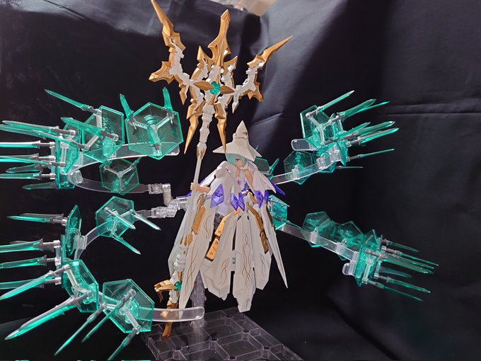 大魔導師、覚醒!! 遂にあのレベル不足でまともに道具を使いこなせていなかったウィッチさんが長いこと雑魚モンスターをチマチマ倒して解禁レベルに到達したぞ! 光と雷撃の魔法を駆使して無数の魔導短剣を召喚して乱射するぞ! と言う "#MSGを纏うという提案" #メガミデバイス #RPGガール