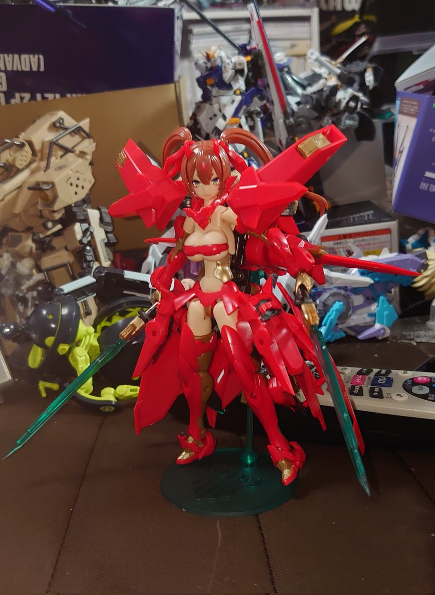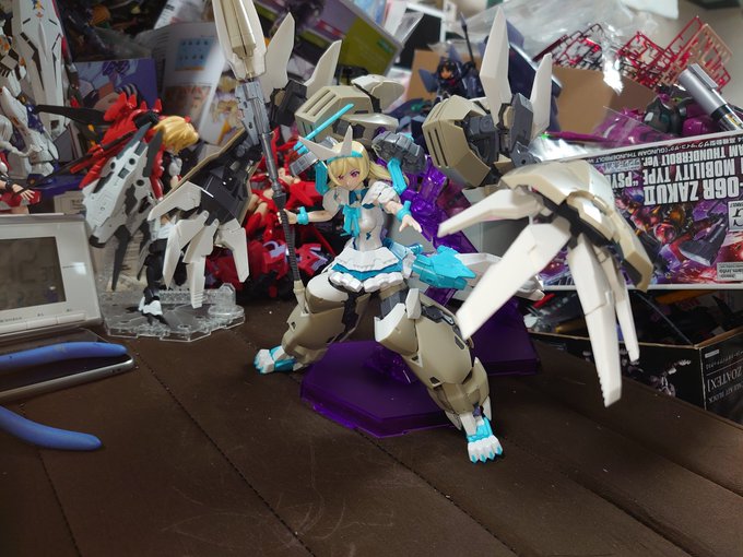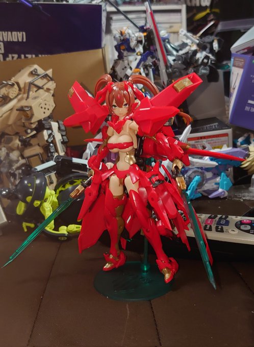 デスクトップアーミーティタニア玄武でけた。 めっちゃ可愛い。デフォルメらしからぬぼでーも素晴らしい。 何より先述の通り可動部が増えてるのがとても良い。 手首回せるのと股関節組み替えなくてよくなった分ポージングがしやすい! あと何気に靴が着いてるのポイント高い。 #デスクトップアーミー