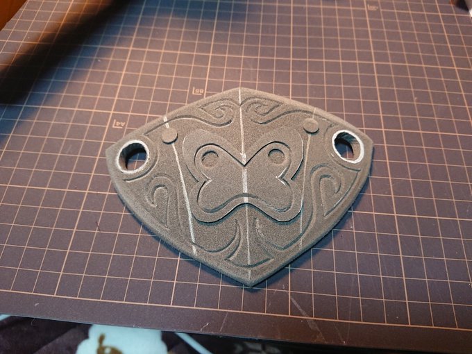 使うか分からない物を彫って布貼った。 #りち造形 #コスプレボード