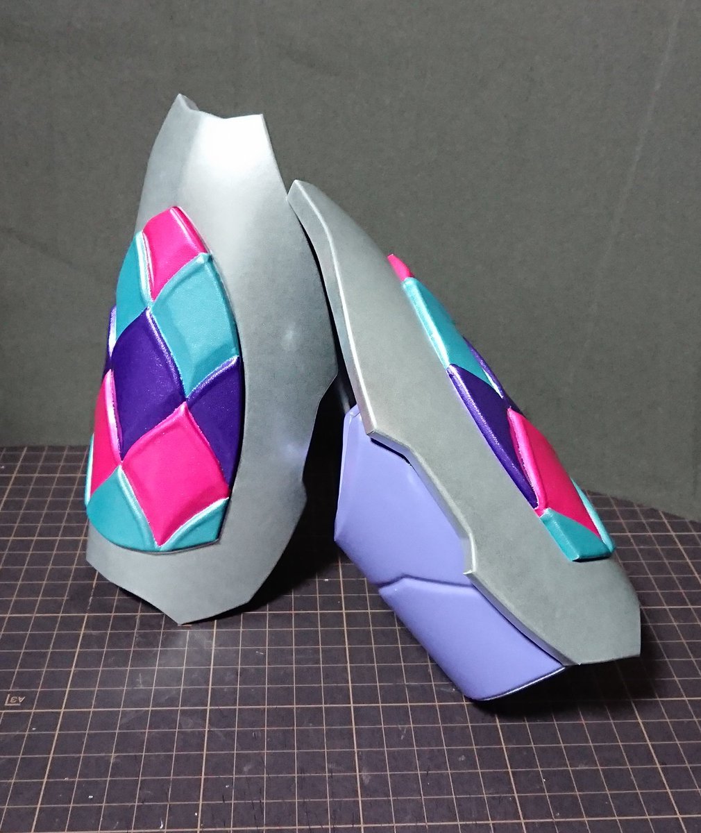 52 172 このタイプの角初めて作った… 貼り合わせむずい。 針金と養生テープで立体作って、型紙からのコスプレボードのハード3mmで🙆 #りち造形 #コスプレボード 19/02/15 03:43
