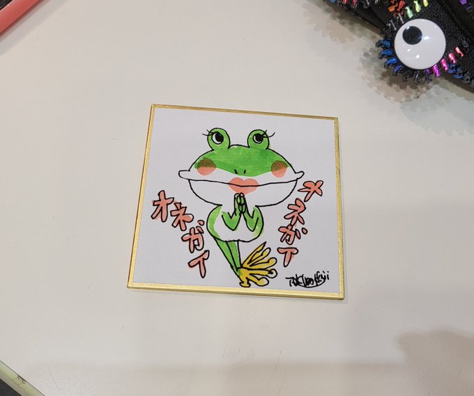 0 22 お願いのキモチがスゴすぎて、 オネエのカエル 「お願いカエル、オネガエル」 爆誕!!やで! そして、シャッチョさん逃亡!! コピック買ってくる!って! 10分で戻ってこーい!オネガイ。オネガイ。オネガエル。 #キャラクター #オリジナル #コピック #豆色紙 #高槻阪急 #催事出店 #リンゴドロボー 22/04/11 17:41