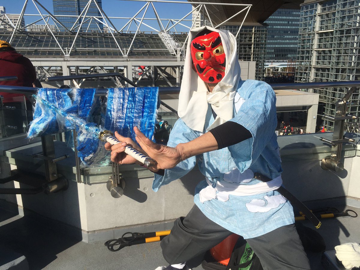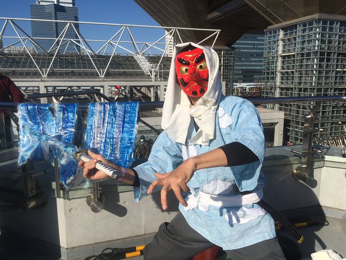 今回冬コミ二日目のコスプレ。 鬼滅の刃の水の呼吸をアナログで表現しようとイロイロ試作してみましたが、なかなか現実味との連結が取れず、歌舞伎風にアレンジしました。 #C97コスプレ #C97コス #鬼滅の刃 #鱗滝 #水の呼吸