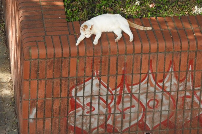 この落書きはマーキング代わりにこの猫さんがスプレーで描いたと思われます🐈✍️ #猫 #猫好きさんと繋がりたい