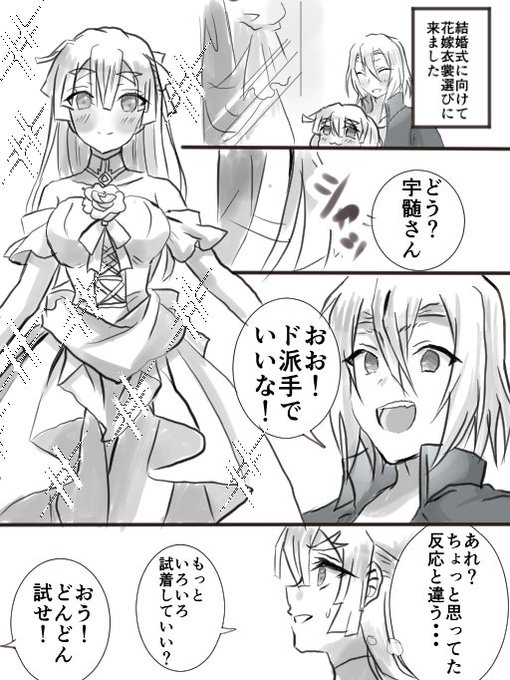 最近練習中の描き方で過去マンガリメイクしました。 もうすぐ6月なのでウェディング宇善♀ ※女体化注意 ※宇善♀