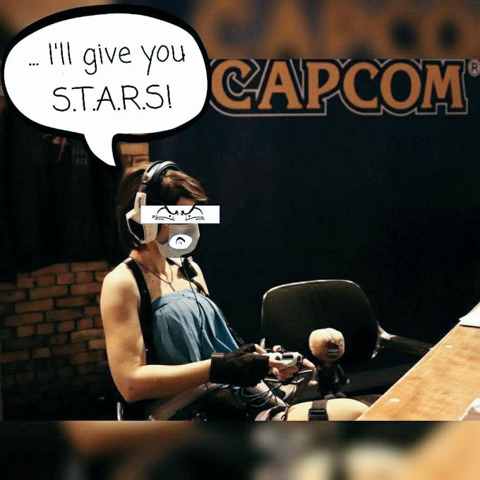 Come on, you creepy-ass stalker! You want S.T.A.R.S? I'll give you S.T.A.R.S! Our gaming station #Cosplay: Sofie as #JillValentine from #ResidentEvil 3 Remake. Photo: By Olli at the booth of @rpd42 and @RECosGer on @Dokomi #dokomi #dokomi2020 #playstation #REBHFun #コスプレ