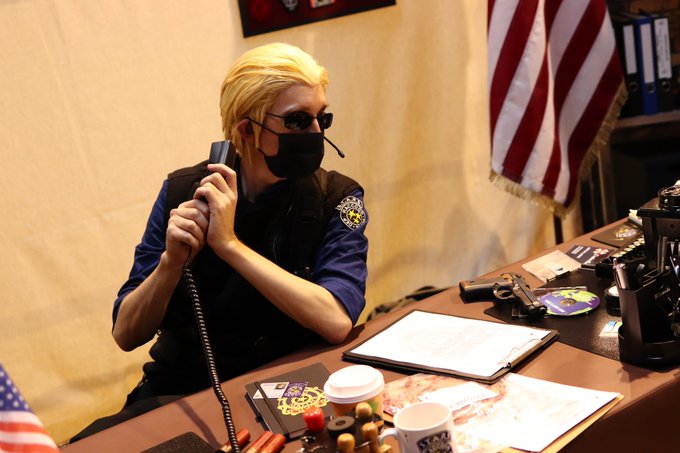 Cosplays from our @rpd42 and @RECosGer booth at @DoKomi (Germanys largest anime- and Japan expo) in September 2020 during C-Virus time... 😷 Fun with masks! #Cosplay: Olli as #LeonKennedy from #ResidentEvil 2 Remake. Photo by Sofie #dokomi #dokomi2020 #REBHFun #コスプレ
