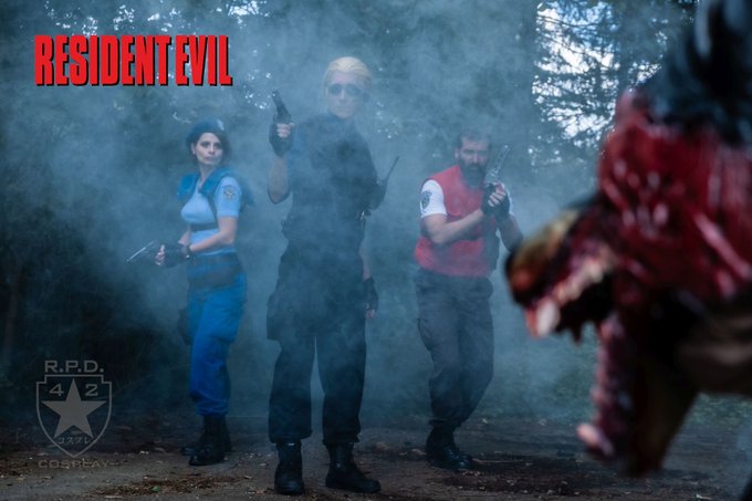 #LeonSKennedy with #GVirus and #AdaWong in R.P.D. police uniform. Photo by @ mr.hightechfotografie instagram.com/mr.hightechfot… #ResidentEvil #RPD #Cosplay #REBHFun #コスプレ