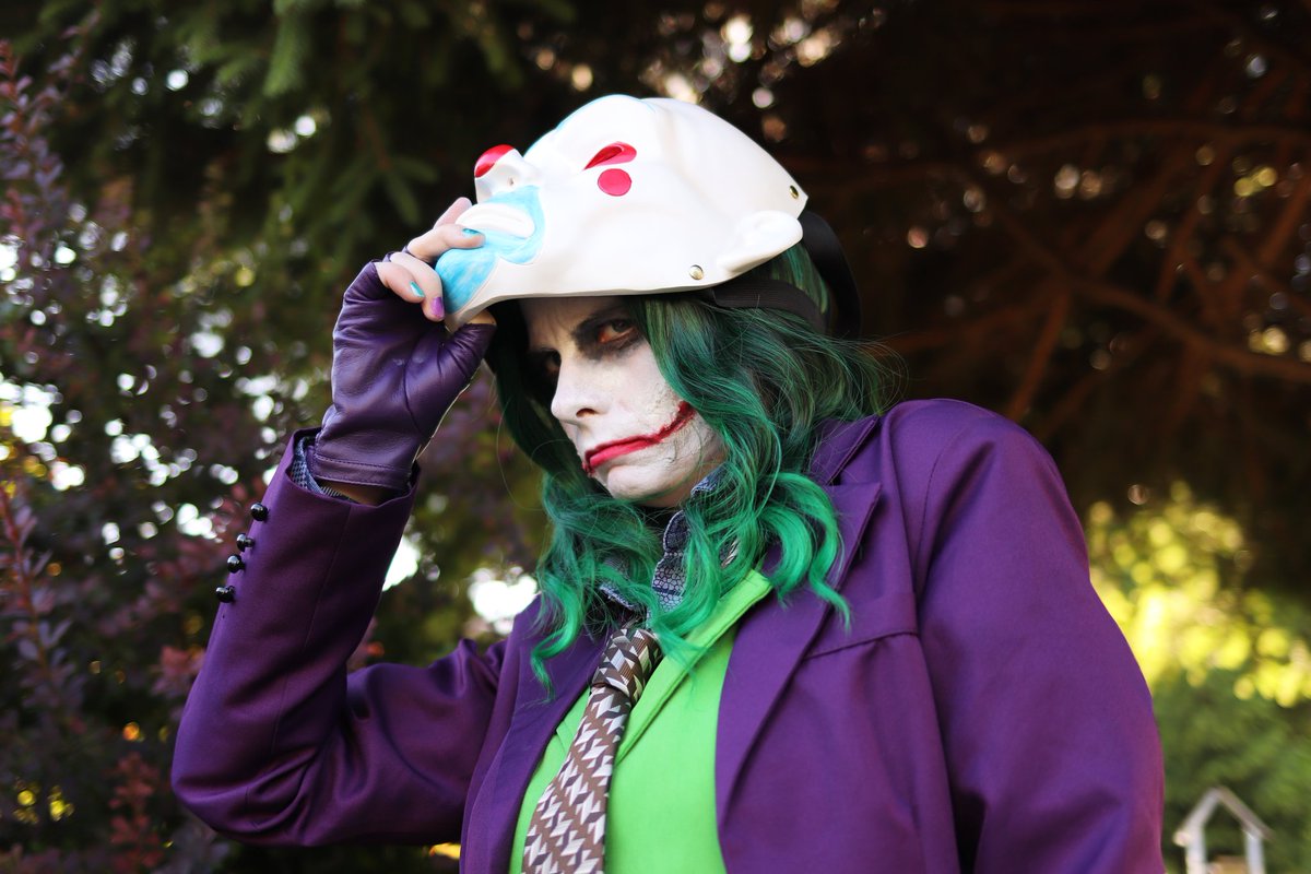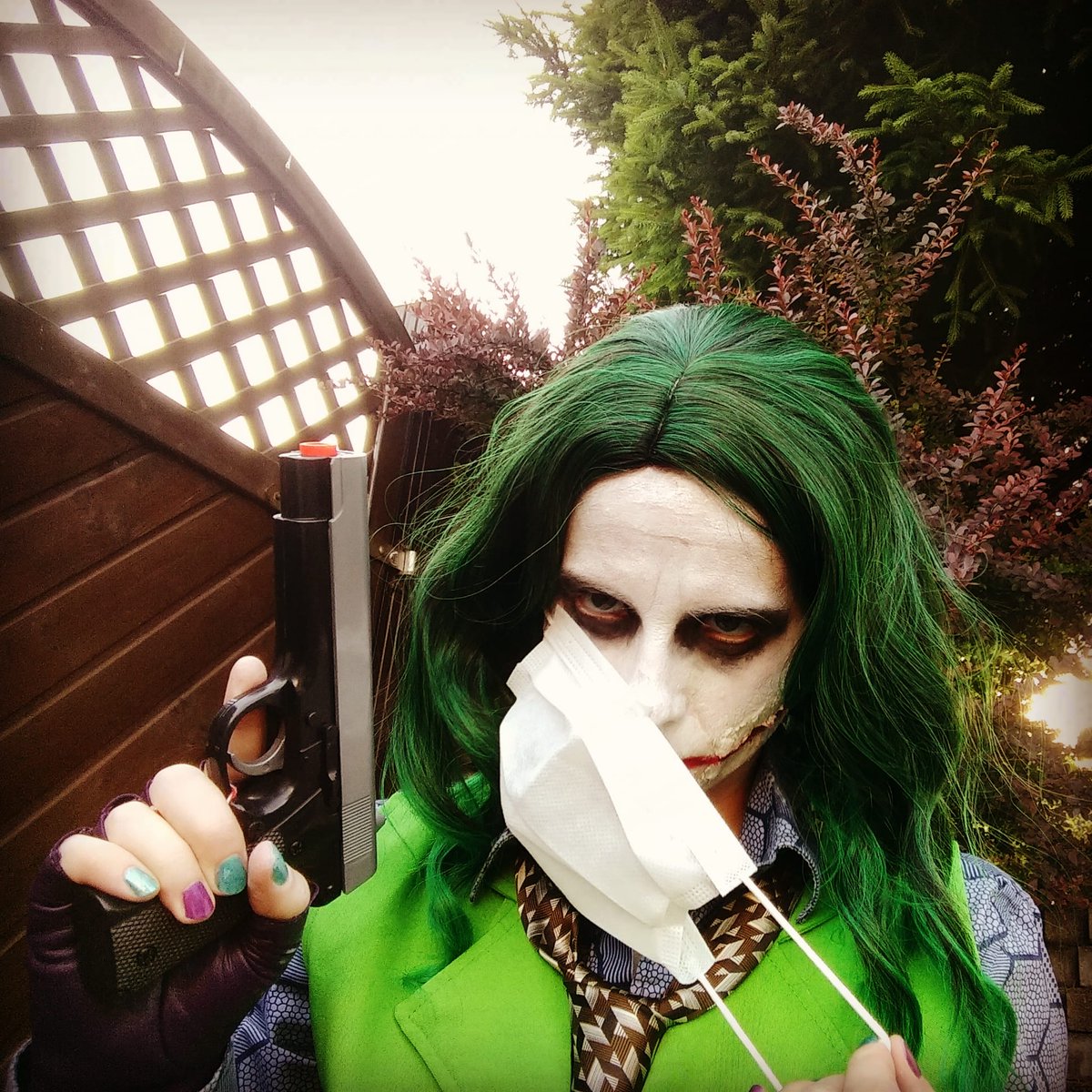 Tragt ihr eure Masken auch brav? #Cosplay: Sofie as #female #Jocker from #TheDarkKnight Photo: by Olli / Sofie #batman #gotham #jokercosplay #mask