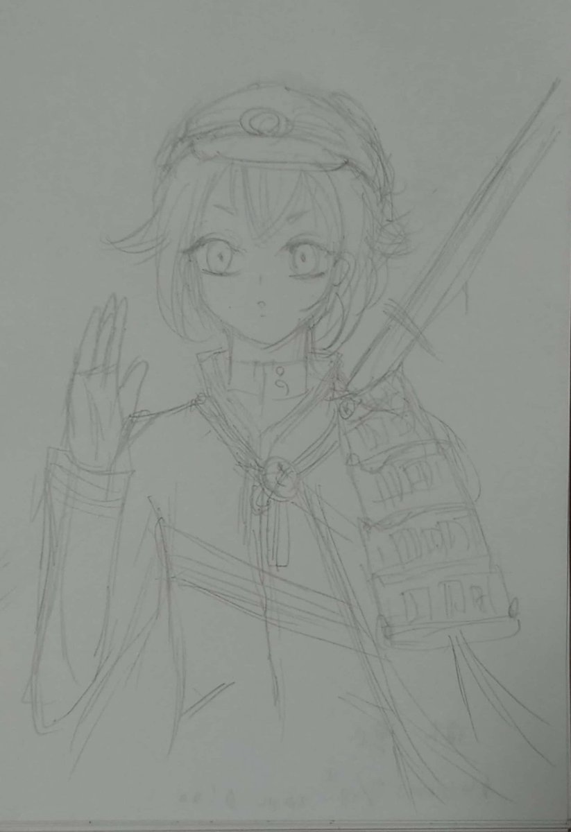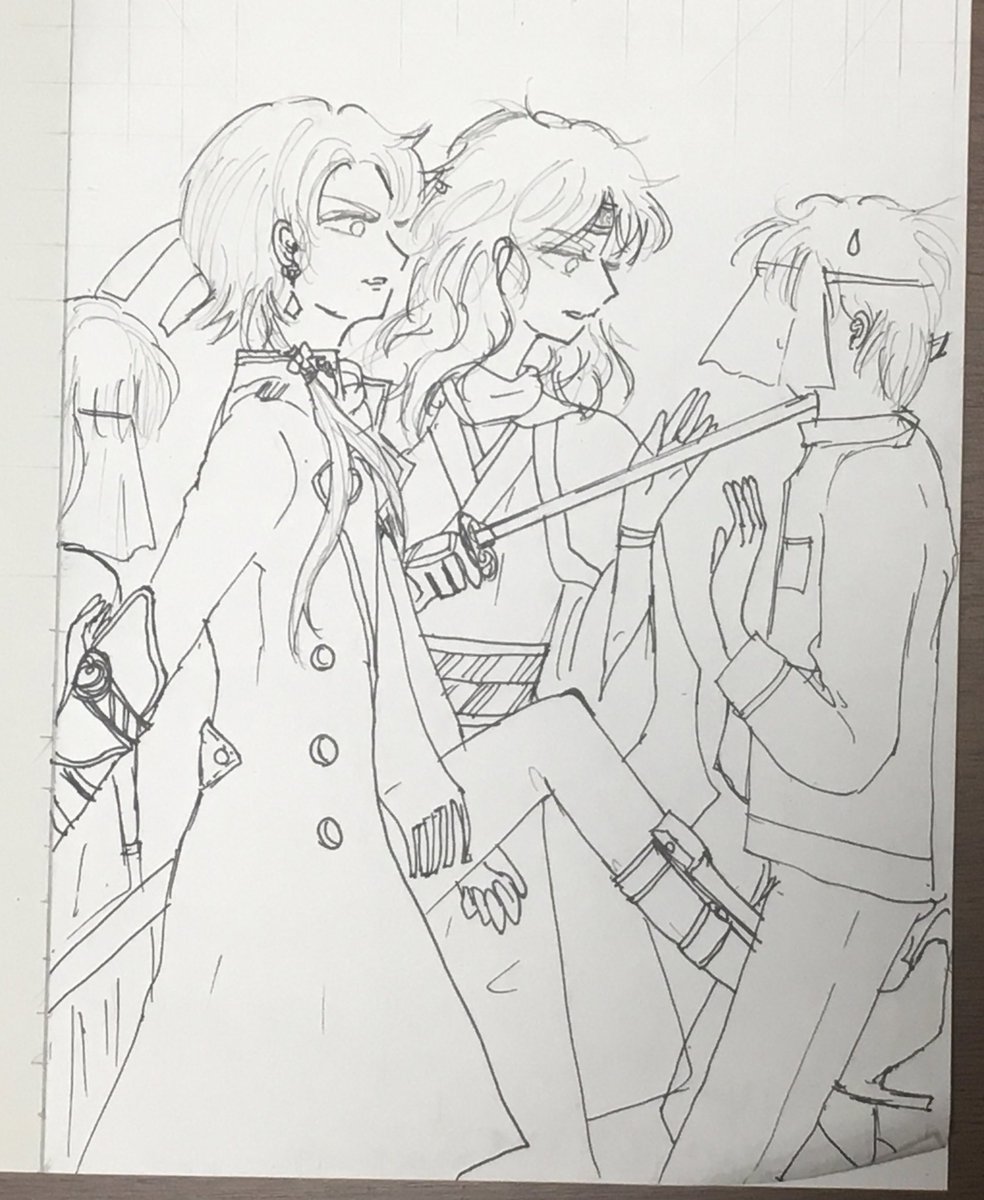 #このタグを見た人はラフ画とその完成絵を見せる お便乗✨🌸見てしまったのでwww😂 アナログで下書きして、デジタルで清書色塗りしてます。 3枚目。フィルターで遊んだの蔵出しします。 最近一番頑張った&お気に入りのセコム沖田組☺️✨