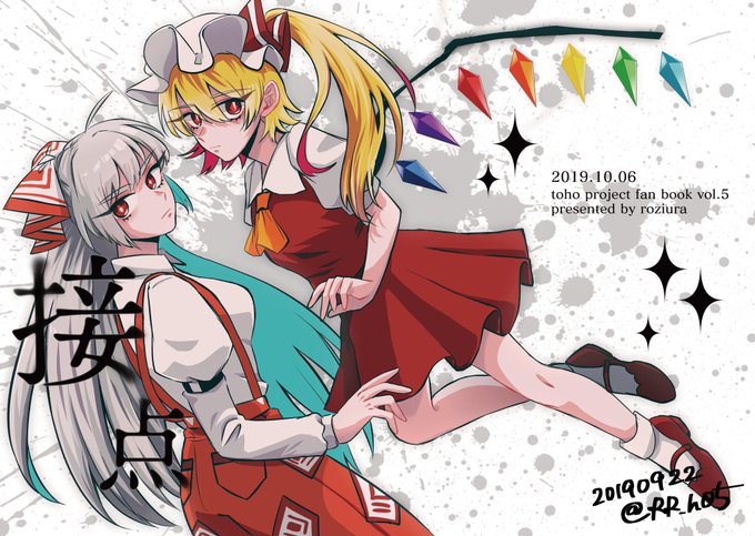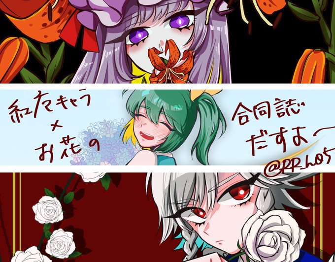 既刊合同誌Flowerに描いた子たち パチュリー、大妖精、咲夜🌷 もう一冊のやみなべの方は妹紅、赤蛮奇、幽々子、チルノを描きました! 当日サンプル見てみて下さい〜🌷 twitter.com/rr_h05/status/…
