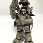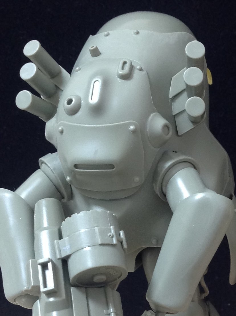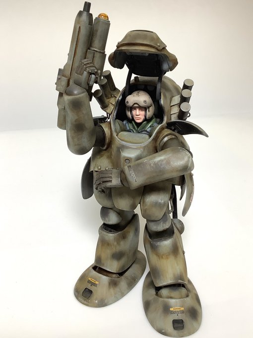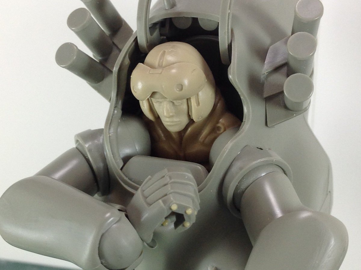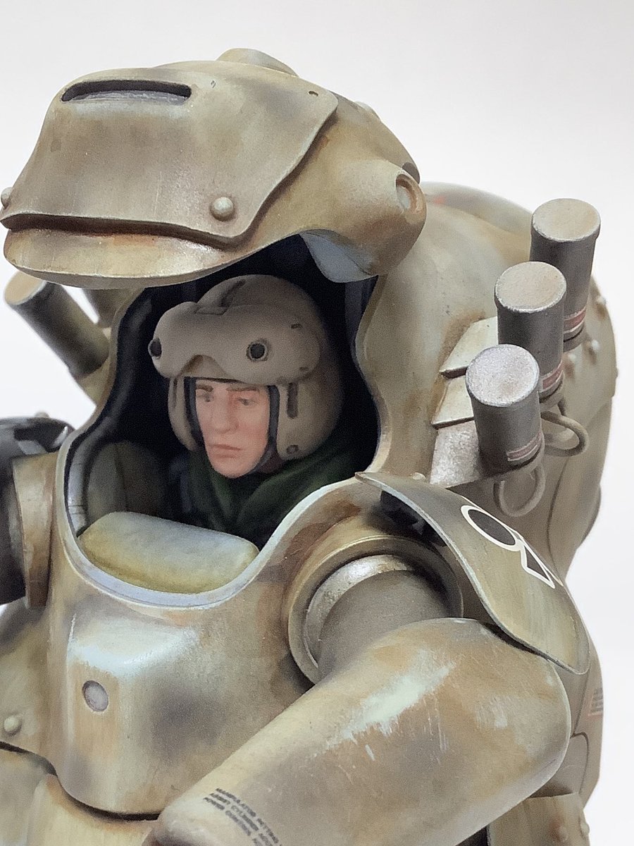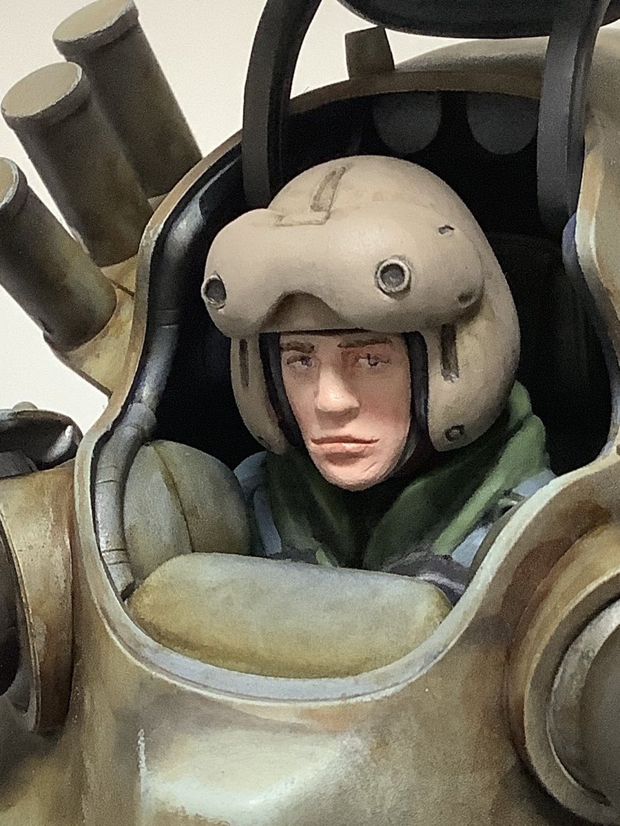 #これを見た人は塗装前と塗装後を貼れ #アンモナイツ #ひろがれマシーネンの輪 #マシーネン #横山宏 #maschinenkrieger #mak 何だか下を向いてションボリしている感じが残念だったので、もう一度瞳を描き直して流し目にしてみんとす。 ……………スレッガー中尉?