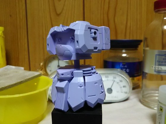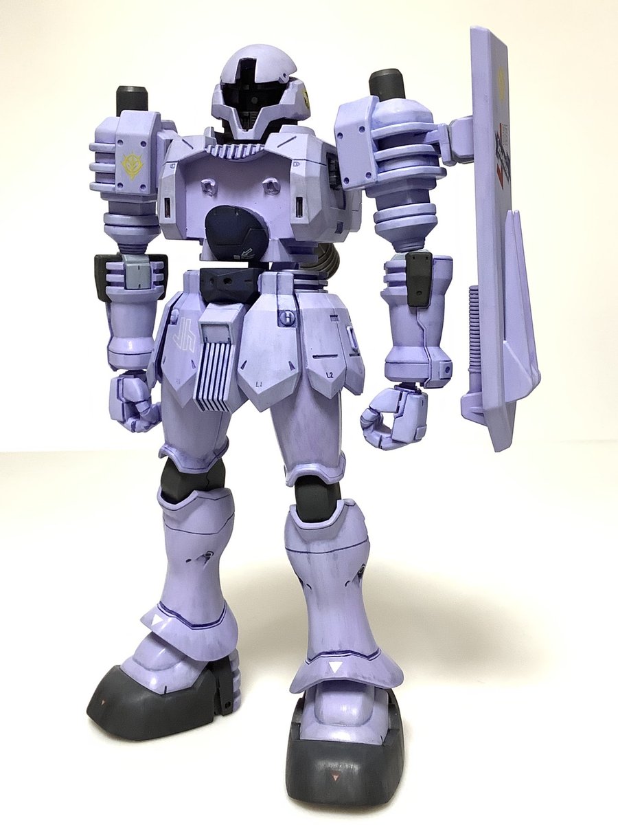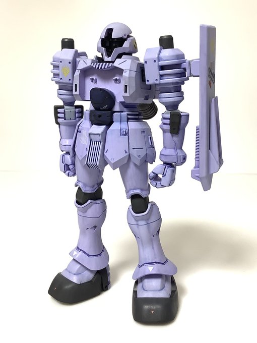 #ガンプラ好きと繋がりたい #ガンプラの画像を貼るとRTされると聞いて #ヅダ の色味が存外に難しい感じ。 基本色はギャンに類似していると思い、貴重なギャン用紫を下地に使い、更にガイアノーツのラベンダーを上掛け。 そこまでは良かったけど、墨入れにコピックを使ったところで凡ミスをしでかす。