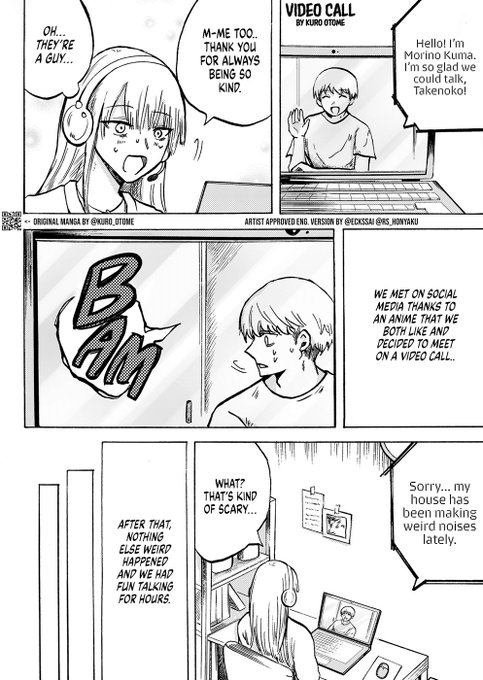 A new set of horror from Kuro Otome arrives 🔪🐧🤳👻🧸 [Video Call] by @kuro_otome Translation by @EcksSai and Red String #HorrorArt #manga #英語学習 #漫画が読めるハッシュタグ