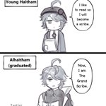 No matter how cold he is, he never stops knowledge. *Reference his “Good night” line that Hoyo just released. #genshinimpact #alhaitham #kaveh