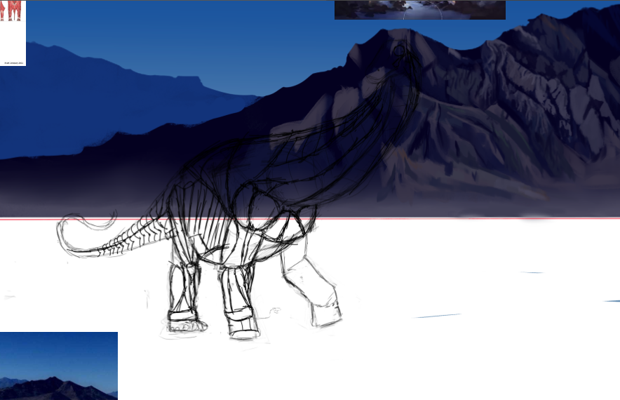 Welp...I guess I won't be able to finish this for #MorrisonWeek. Decided to experiment with different concepts, ideas and landscapes. Gotta say tho, preferring this one way more than the last one, stay tuned! - RT #WIP #Brontosaurus #paleoart #SciArt #landscapepainting #dinosaur