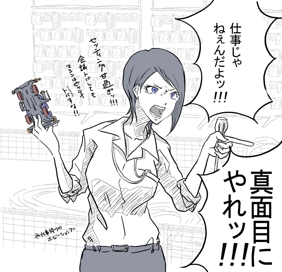 おにぎり屋さん(RE専門ショップ)を経営してるおばあさん(レジェンドチューナー)に飼われてる猫(専属ドライバー)。 #絵かゆ