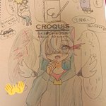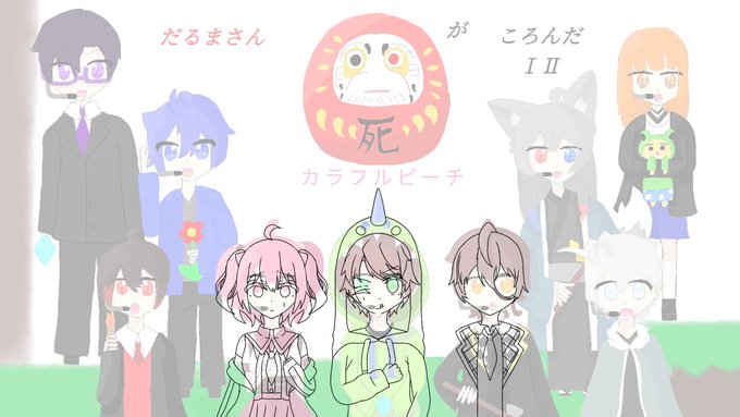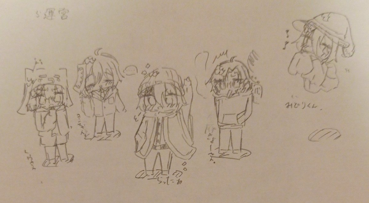 昨日の🌈🍑とnichijouとのコラボの動画見ながら(プレミア公開後)、💜🤧ちゃんを落描きしてましたw(❤️🍑くんもいますw) 後半も落描きしよ〜♪ #しにがみあーと #からぴち