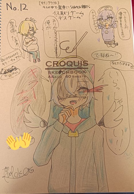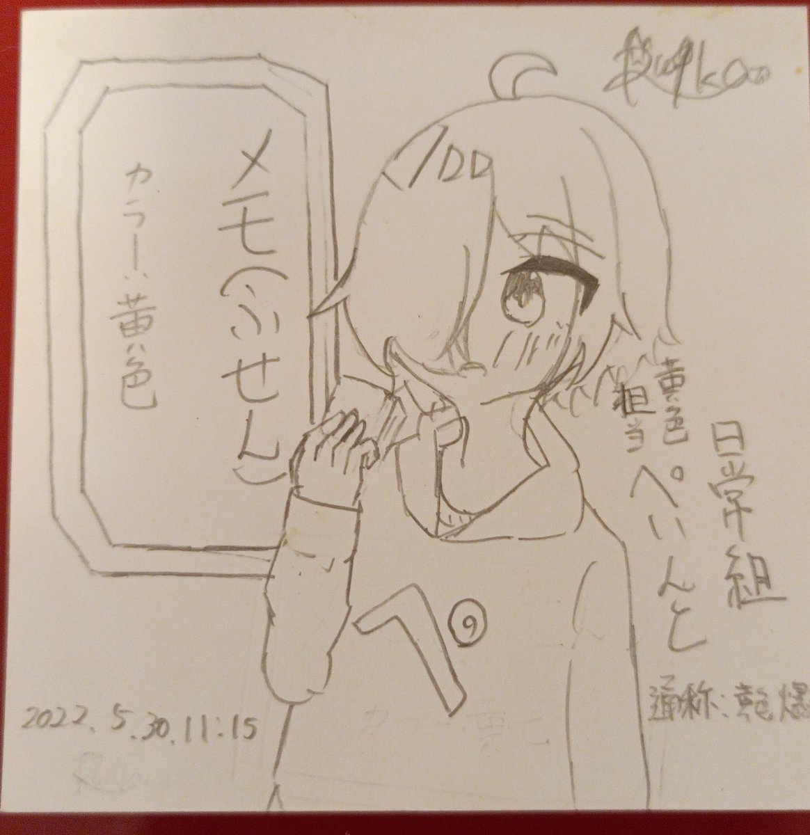 2 4 昨日の🌈🍑とnichijouとのコラボの動画見ながら(プレミア公開後)、💜🤧ちゃんを落描きしてましたw(❤️🍑くんもいますw) 後半も落描きしよ〜♪ #しにがみあーと #からぴち 22/08/12 14:51