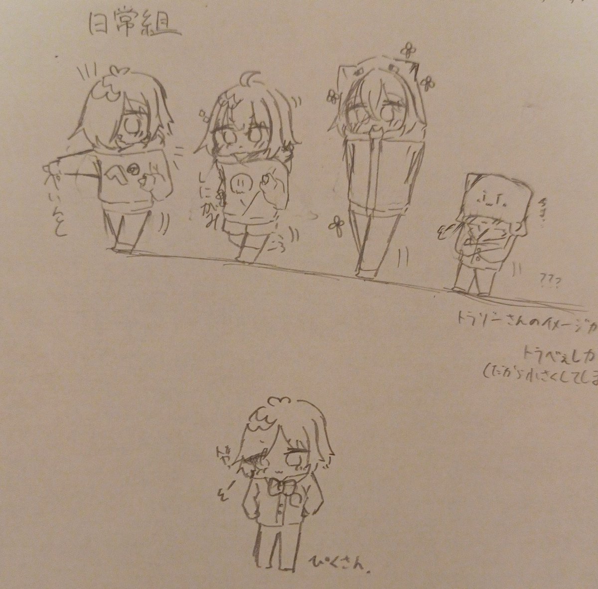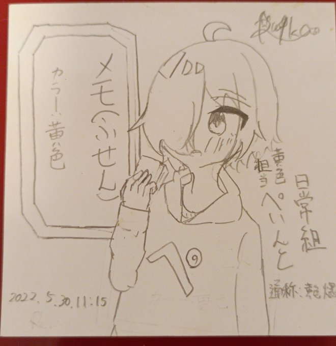 2 11 前に描いた落描き 友達に「まじで誰かわからないから描いて名前も」と言われ描きました☆ #しにがみあーと #クロノアの美術館 #トラソの展覧会 #ぺんちゃんの絵本 #Nakamu #ロボロ #シャオロン #しんぺい神 #ひとらんらん #グルッペン #兄さん 22/07/16 20:23