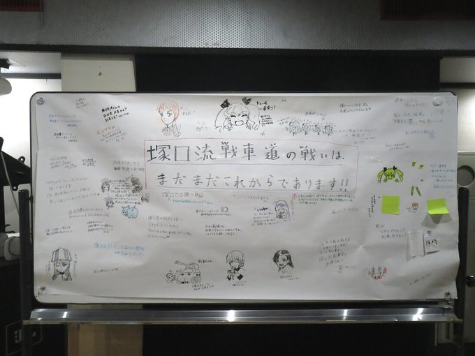 今の時期はバイクで行くと、音を浴びる前に頭の中が暑さでプリンになるのですが、三話はもう一回は観に行かないと…。 今回の落書きはドゥーチェを称賛するアンツィオモブ子達にしました。牛長谷川は待合室滞在一〇分で描けず。 #塚口サンサン劇場