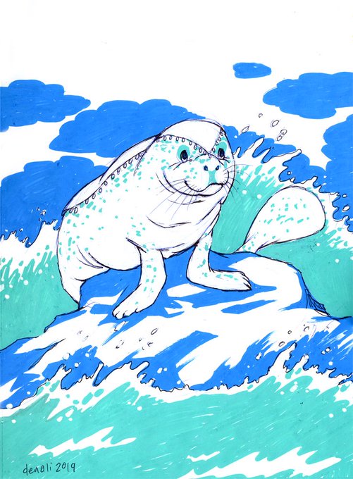 Two more OC Inktobers!! Shocker, I don't have a name for the manatee either. xD But she's a magic teacher. Hyena/coyote hybrid is Dana, a cute energetic lady who fidgets a lot! #furryart #inktober2019 #inktober #artistsontwitter