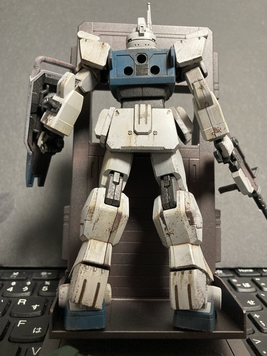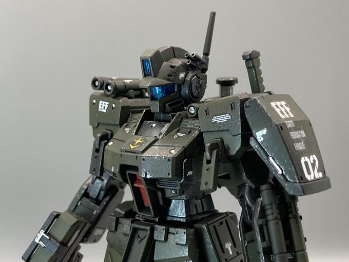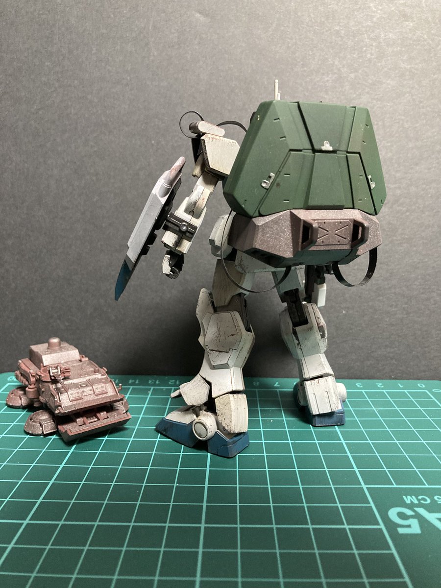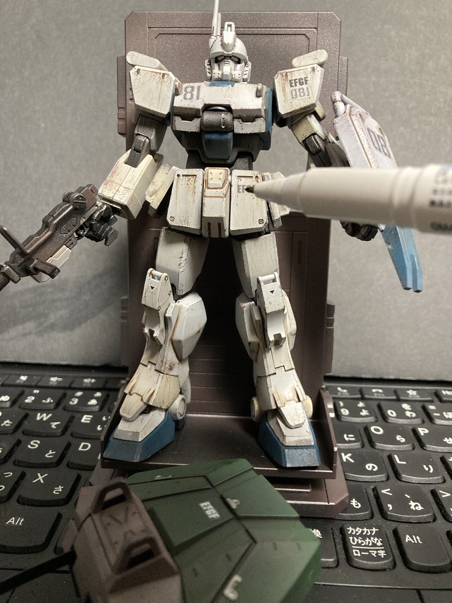 #ガンプラウェザリング #ケープ剥がし #スポンジチッピング 神のペンを久々持ち出してケープ剥がし後の剥がしすぎたとこや汚せてないところをライン引いたり、ちょんちょん点描画式で乗せていく感じ。やっぱ汚しはたんのしいなぁ〜♪
