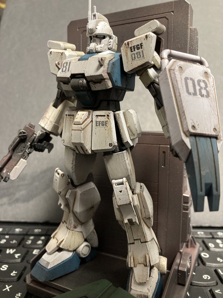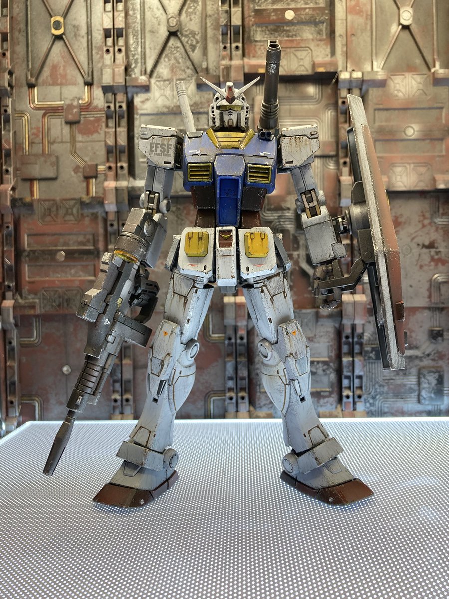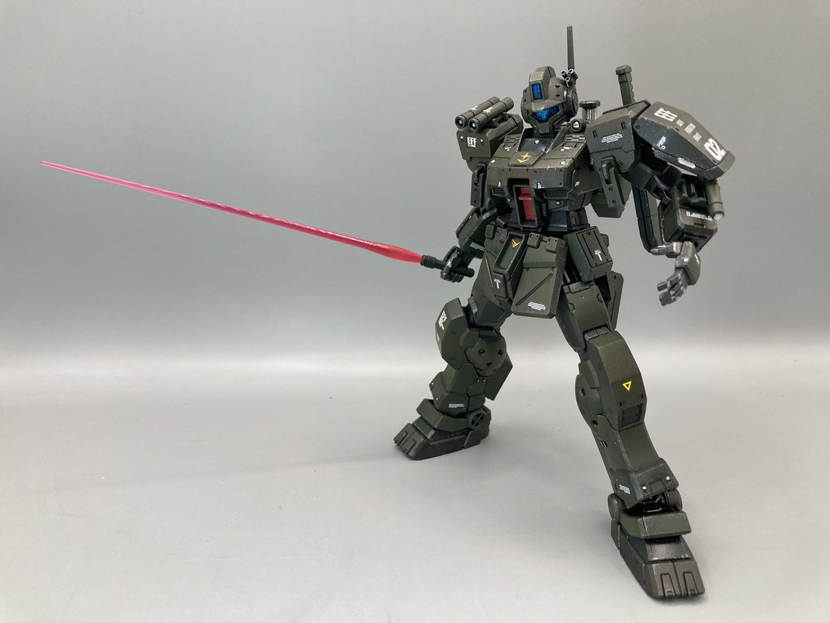 #ガンプラウェザリング #ケープ剥がし #スポンジチッピング 神のペンを久々持ち出してケープ剥がし後の剥がしすぎたとこや汚せてないところをライン引いたり、ちょんちょん点描画式で乗せていく感じ。やっぱ汚しはたんのしいなぁ〜♪