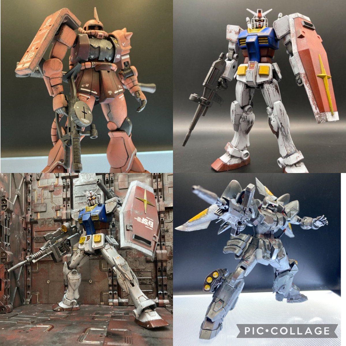 @Yodobashi_Hobby #年末うちの子自慢キャンペーン #今年作ったプラモ晒そうぜ 今年作はこの辺り。最新作はツイートに間に合わないのでまたの機会に。どれも作風は戦闘によるキズやサビをたっぷりそこはかとなくヤリ過ぎない程度に仕上げるのが好み。10月に参加したザブングルの展示会【オフザブ】でサンライズ熱上昇中