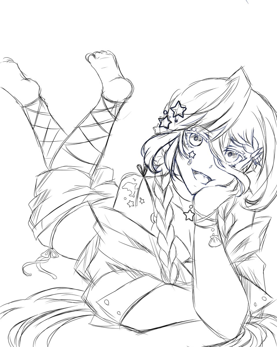 畑荒らしさんとコラボのマリパでの罰ゲームを受けるウルさん めっちゃ可愛くて描いてみました賭ケグルイ蛇喰夢子の猫ポーズ風です💓 #銀琥画廊