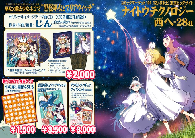 【イベント告知】 2/19 コミティア143 にサークル参加します。 新刊はご用意出来ませんが、冬コミと同じく「黒髪巫女とマリアウィッチ総集編」とテーマ曲CD「3番目の魔法」、あと麻呂猫様ふろしきが並ぶ予定です。 東6ホール J-46b ナイトウテクノロジー でお待ちしてます! #コミティア143 #COMITIA143