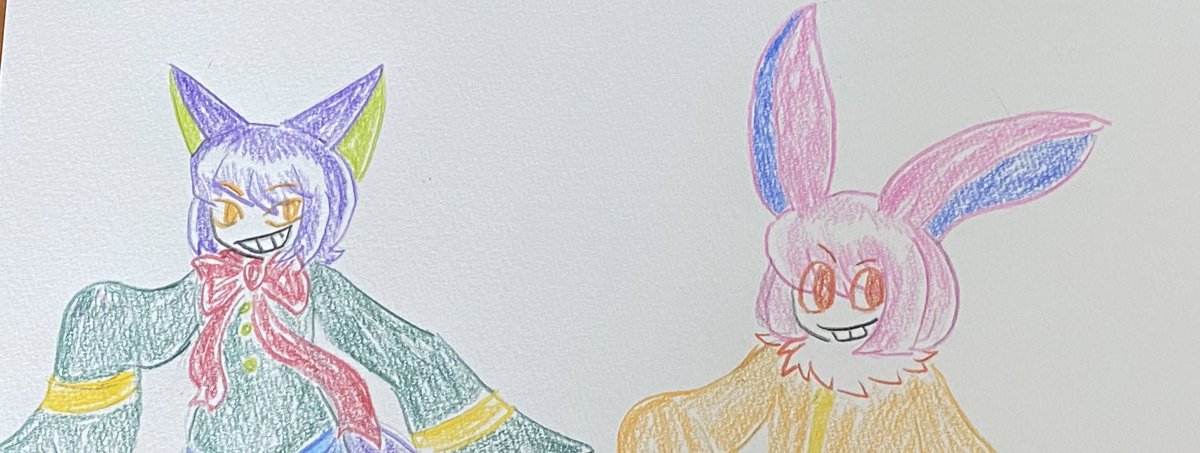 うさぎとねこかわいくなった? ぼちぼちやってくぜ #絵柄が好みって人がいればいいなぁ #アナログ絵 #アナログイラスト #絵描きさんと繫がりたい #イラスト #絵 #アナログ絵描きさんと繋がりたい