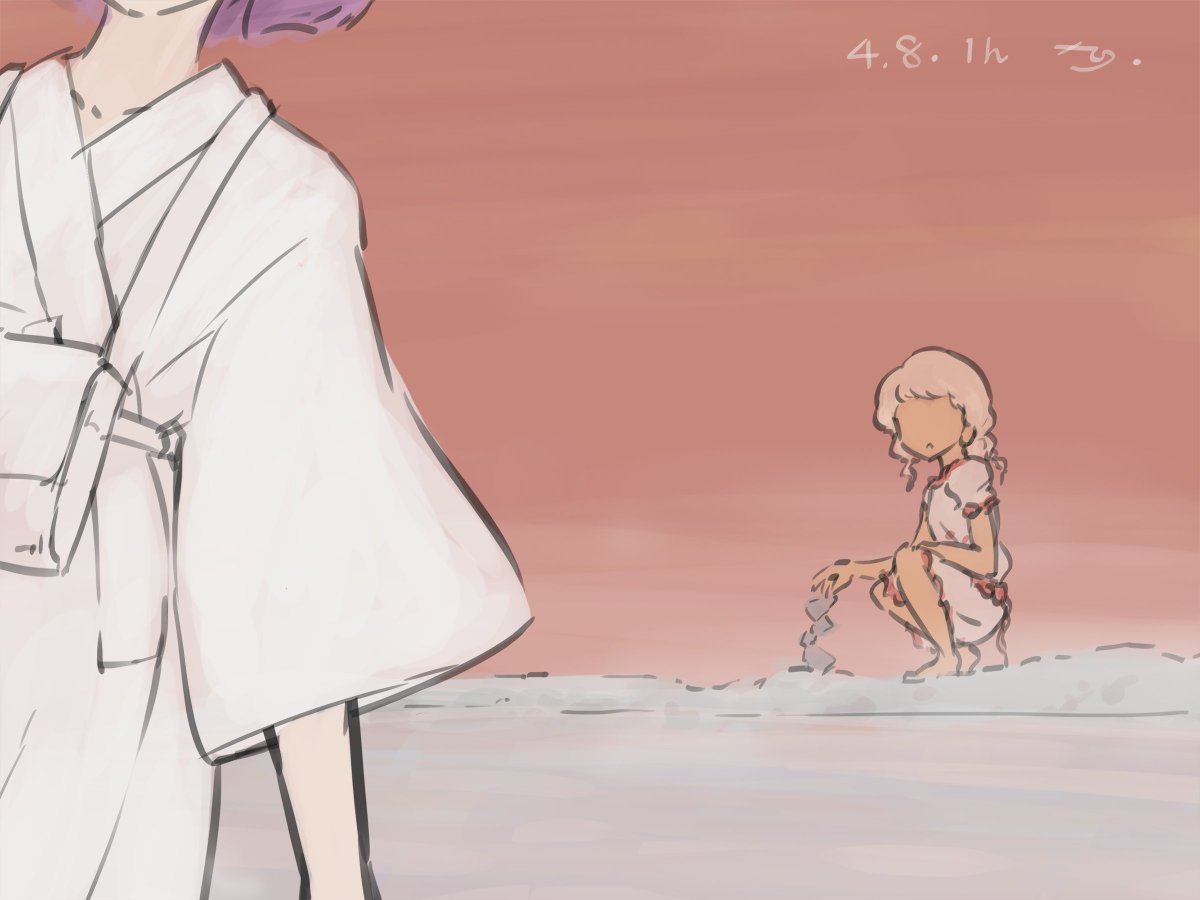 昨晩はひたすら暑かったので海に行きたいなぁというそんな気持ちの絵
