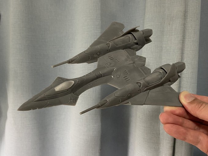 VF-14 バンパイア VF-1 RIDERS参加作品 形状に納得できなくて、データを修正して再出力したので、明日から塗装になりそう… 塗装工程がスムーズに終わったことがないので不安だ。まずはハンドピースのカップ内に固着した塗料を落とすところから😅 #静岡ホビーショー2022 #モデラーズクラブ合同作品展 twitter.com/r_grey_go/stat…