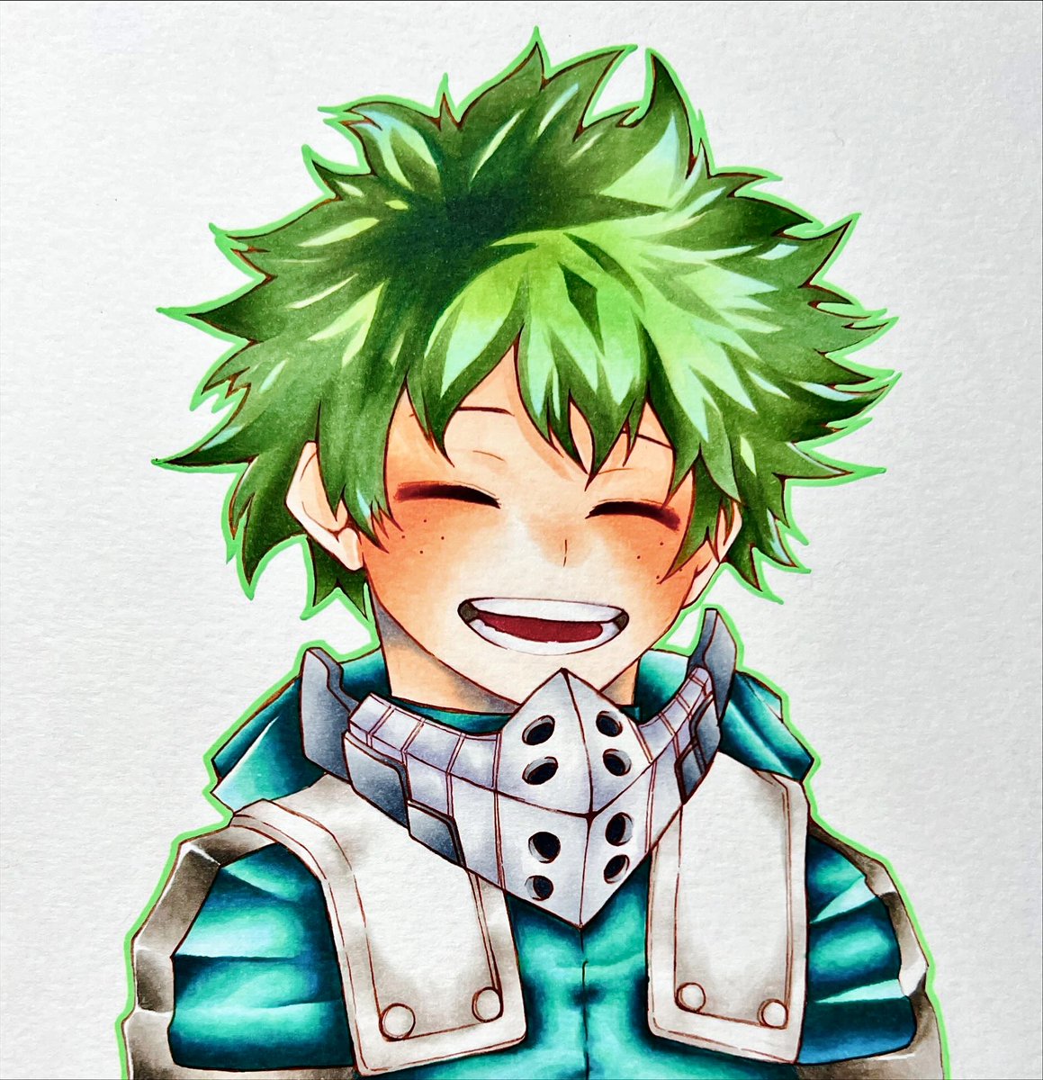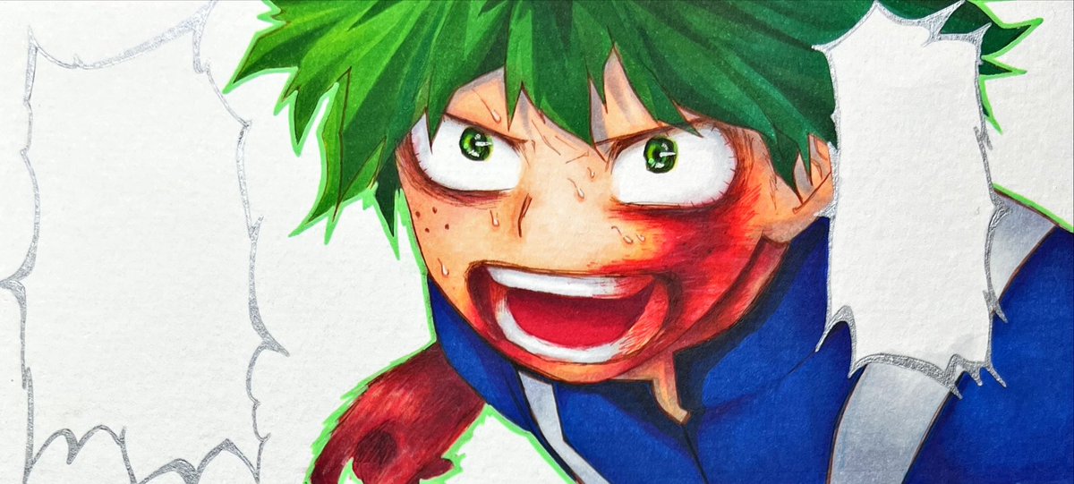 最近全く上達しているとは思えなくなってしまった😇達成感感じねぇ、、、🫥 デクイラストの全体です👍 #イラスト #コピック #MyHeroAcadamia #IzukuMidoriya