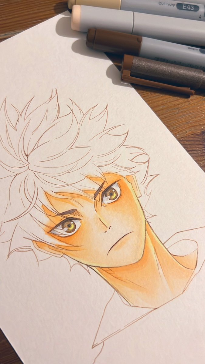 描いてます。 線画滲んで萎えました🫠 #イラスト #コピック #ハイキュー #日向翔陽 #絵描きさんと繫がりたい