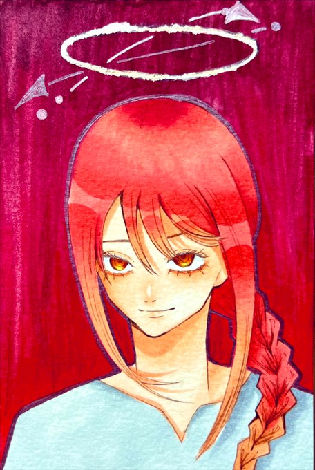 1 16 水彩のなんか剥がすやつ(?)失敗してある意味芸術的な輪ができました😇 #イラスト #チェンソーマン #マキマ 22/10/23 08:09