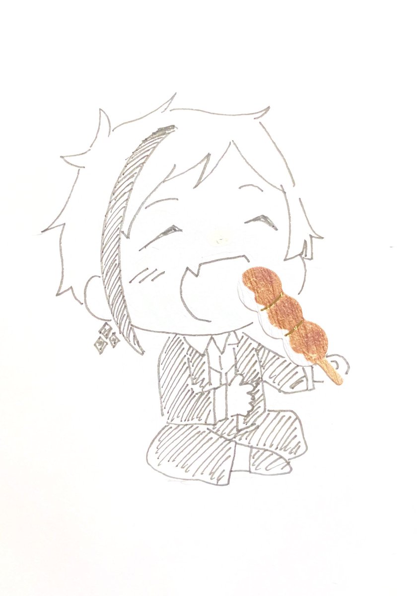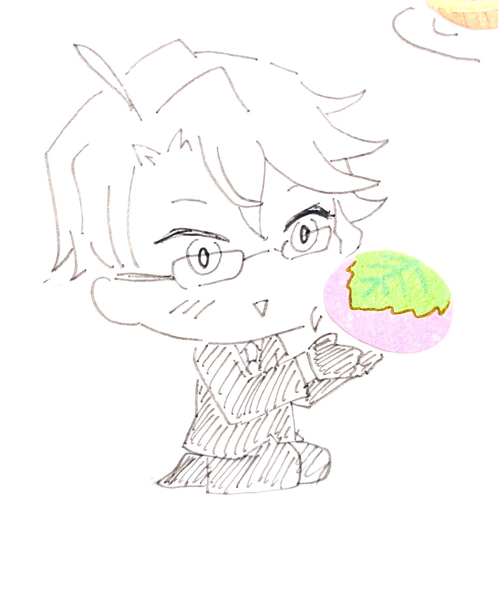 1 7 シールでアナログイラスト✨ twstで監督生♀が色々あって 和菓子を手に入れた 🦈「なにこれーもちもちー✨」 🐬「食べやすい甘さですね」 🐙「桜の香りがいいですね」 #twstファンアート #twst夢 20/08/01 21:26
