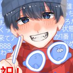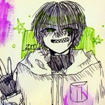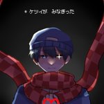 0 5 #コンてすと いつぞやのセリフです。両手ピースしてそう(偏見) イカの面この付け方で描くの初でしたが楽しかったです。 20/05/09 21:32