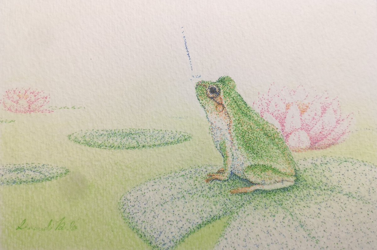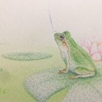 #ボールペン #色鉛筆 #点描 蛙のボーッとした顔が結構好きです。