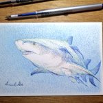 #過去絵を投げて絵を描いた気になろうキャンペーン #点描 #ボールペン画 #色鉛筆 #サメ #絵描きさんと繋がりたい #絵柄好みって人にフォローされたい